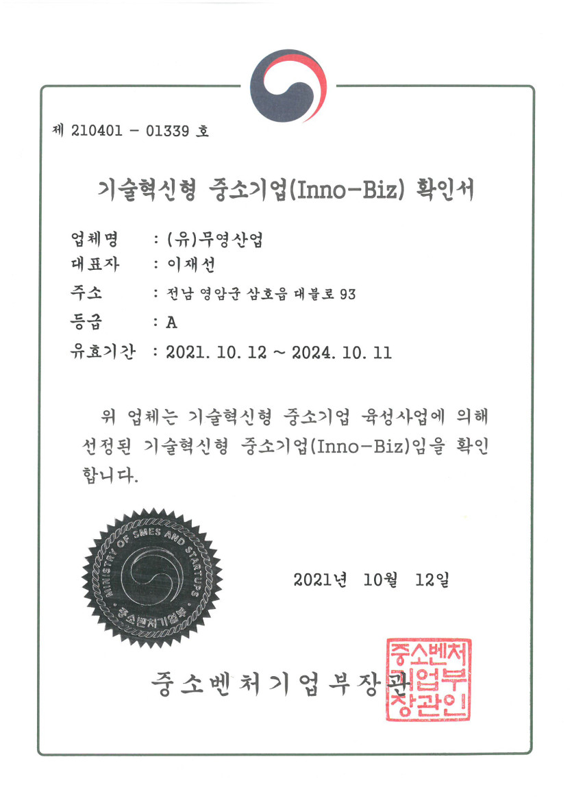 이노비즈 인증서